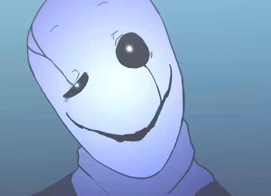 Зелёные зубы-рот, выглядывающие из-под тьмы капюшона, а зелёные глаза без зрачков… Словно маска или картина, лицо Дукласа никак не менялось. Он никак не реагировал на окружение, просто идя к своей цели.