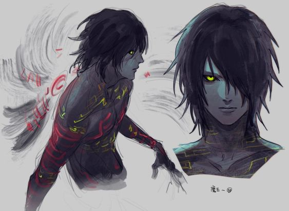 Она едва узнала эту фигуру, даже душа её ассистента-парня-любовника изменилась. Почти полное отсутствие одежды, только остатки рубашки, брюк и туфель. Они потёрты, рубашка едва держится на теле, а правого рукава нету до плеча. Брюки по колено разорваны, открывая вид на полностью чёрные ступни ног, исписанные странными светло-синими рунами, что, переливаясь, исчезали-появлялись.