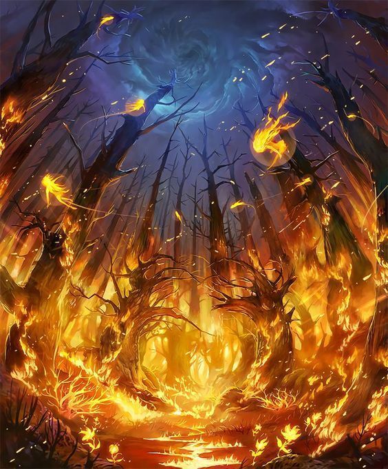 Тут, Ева заметила, что окружающие их поляну деревья загорелись. Она поняла откуда тут пепел…