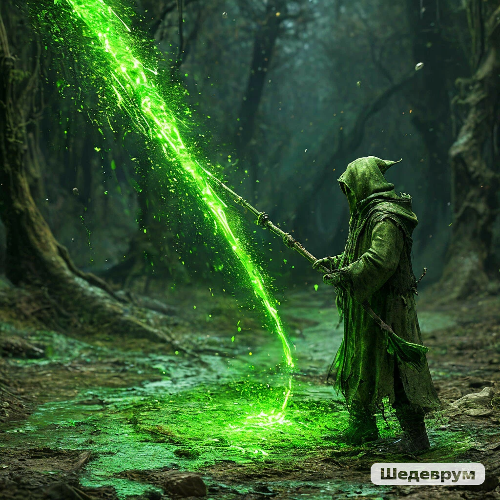 — Я преподам тебе урок, сопляк, — сухо сказал архимаг и резко выставив посох набалдашником в сторону своего визави. С него полился зеленоватый туман, отдающий могильным хладом.