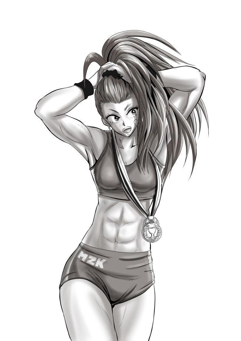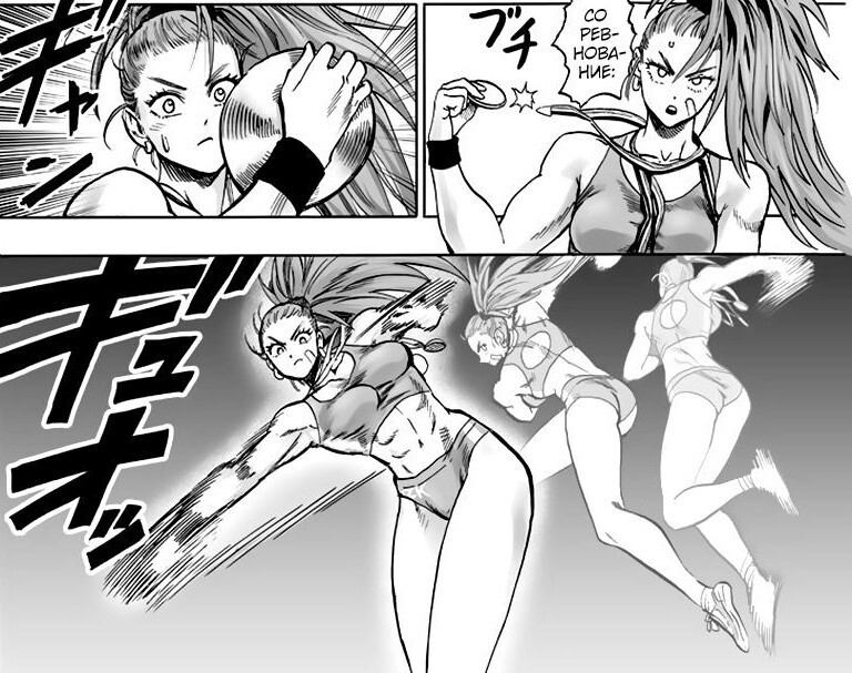 В следующее мгновение, Мизуки уже прыгнула высокого вверх. Сначала мне, да и монстру внизу, показалось, что героиня планирует обрушиться на него сверху. Однако, не долетая до земли примерно метра четыре, моя напарница внезапно схватила эстафетную палочку двумя руками и… та в мгновение ока удлинилась, превратившись в настоящий шест для прыжков. Перемахнув через удивлённого таким финтом боксёра и оказавшись у него за спиной, Мизуки сорвала с шеи одну из своих медалей.