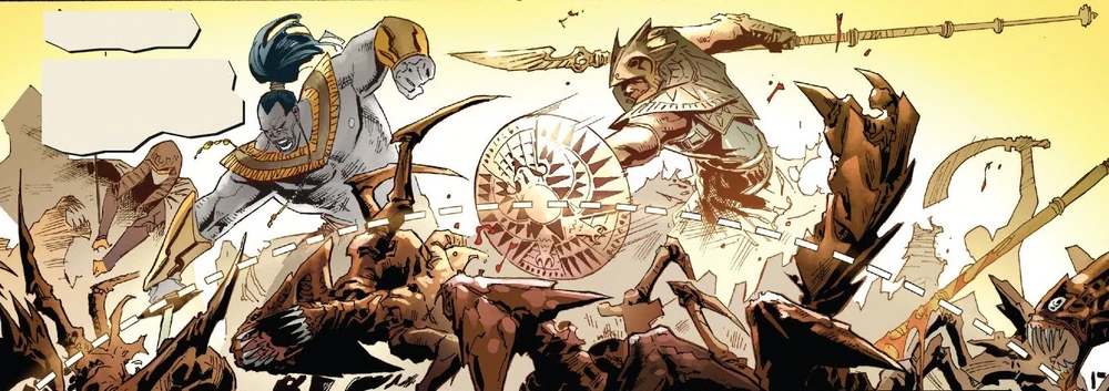 (Апокалипсис и Имхотеп вместе месят демонических насекомых Выводка и прочих демонов в 2620 году до нашей эры… ага, Апокалипсис у нас не всегда был злодеем, просто без семьи характер у него испортился)
