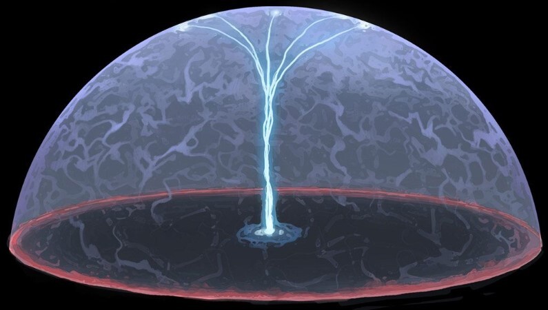 По мере активации контуров всё больше накопителей маны включались в работу, постепенно отдавая накопленную за года пассивной работы ману. Сначала купол был прозрачным, такт, купол покрылся чёрной сеткой, такт, поверхность купола замылилась, а с последним тактом под куполом образовался кромешный мрак, лучи солнца больше не проникали под защиту дома. «Всё же я неплохо поработала», — немного улыбнулась я.