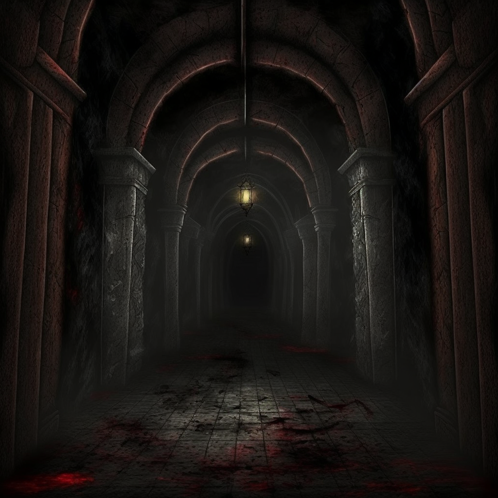 За дверью пролегал длинный прямой коридор, конца которому из-за тусклого освещения двух ближайших ламп сверху было не видно. На полу тут и там были многочисленные следы крови. Некоторые были яркого алого оттенка, другие, скорее, тёмно-красного. Дальше виднелся лишь сплошной черный мрак, а сама картина навевала зловещие ассоциации.