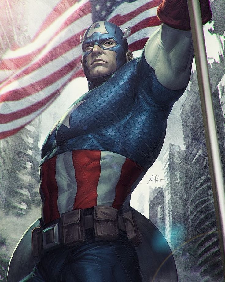 Стоило Гоблину взять крутое пике и выйти на линию поражения выдвижными лезвиями бессознательного паучка, которого сейчас удерживал в воздухе Стервятник, как, нежданчик! Крылатому идиоту в хайло прилетел звездно-полосатый круглый щит, а тупня на глайдере откинуло взрывом сдетонировавшей стрелы.