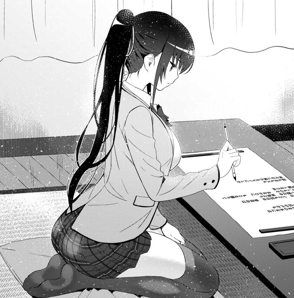 Незаметно ноги вывели меня к комнате клуба каллиграфии. Давненько я здесь не был. Отодвинув дверь, я вошёл в помещение. Взгляд сразу же зацепился за сидящую в позе сэйдза Саюки, что старательно водила кистью по листу ватмана.