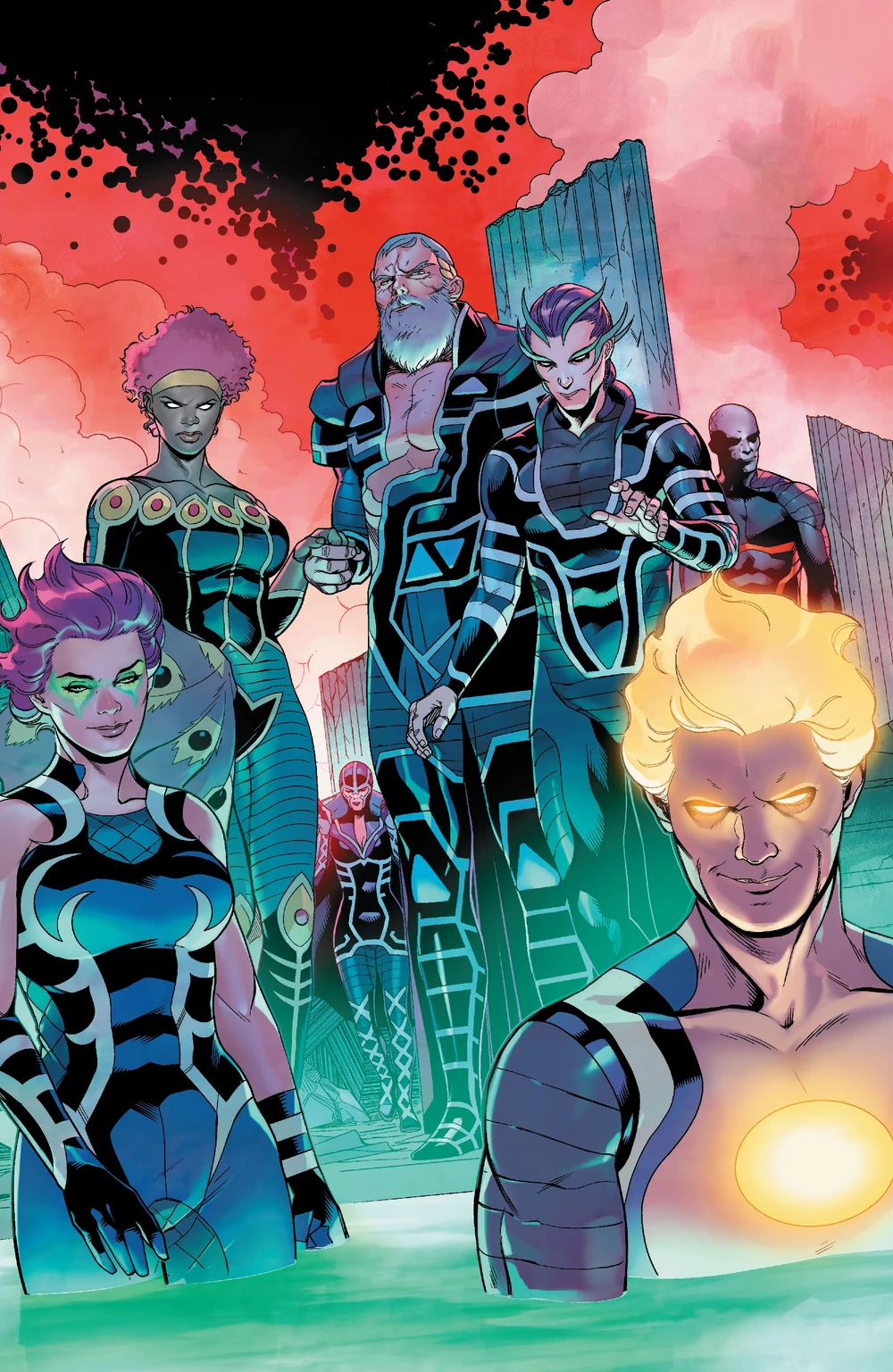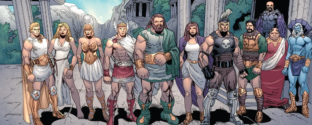 (Олимпийцы послабже в их футуристичной одёжке… кстати, вон та афроамериканка — Афина, да, я сам в шоке от её цвета кожи… а на заднем плане Олимп, футуристичный что пипец)