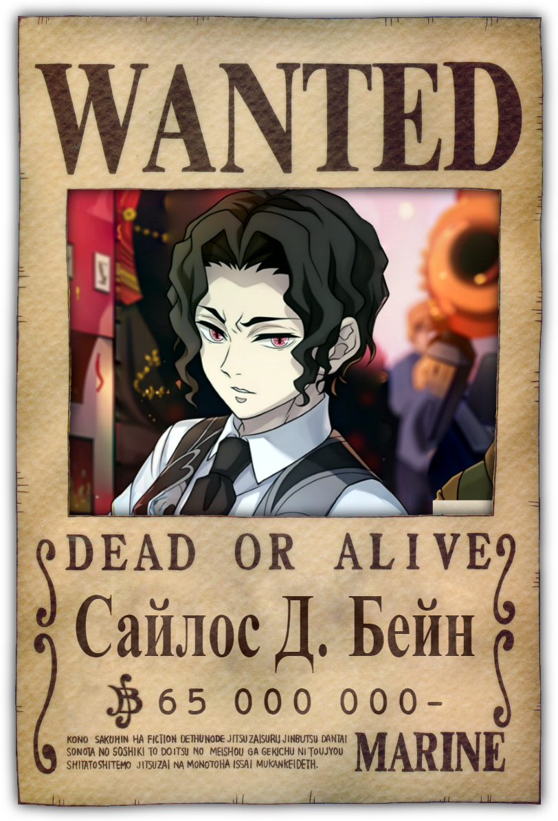 Живым или мертвым: «Кровавый Демон» Сайлос Д. Бейн. 65 000 000 белли. Капитан пиратов «Кровавой Розы». Пытался захватить агентов Мирового Правительства.