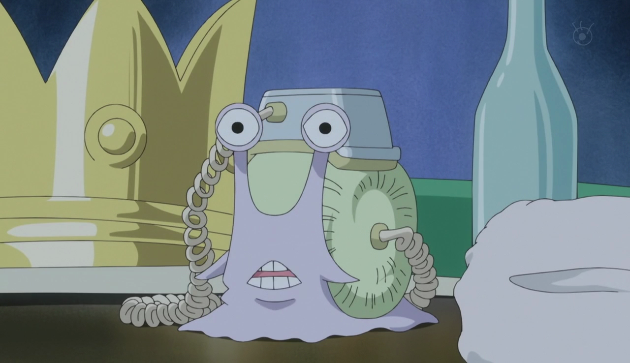 Зазвучал в хорошо обставленном кабинете Ден-Ден-Муши. (Телепатическая улитка играющая роль телефона)