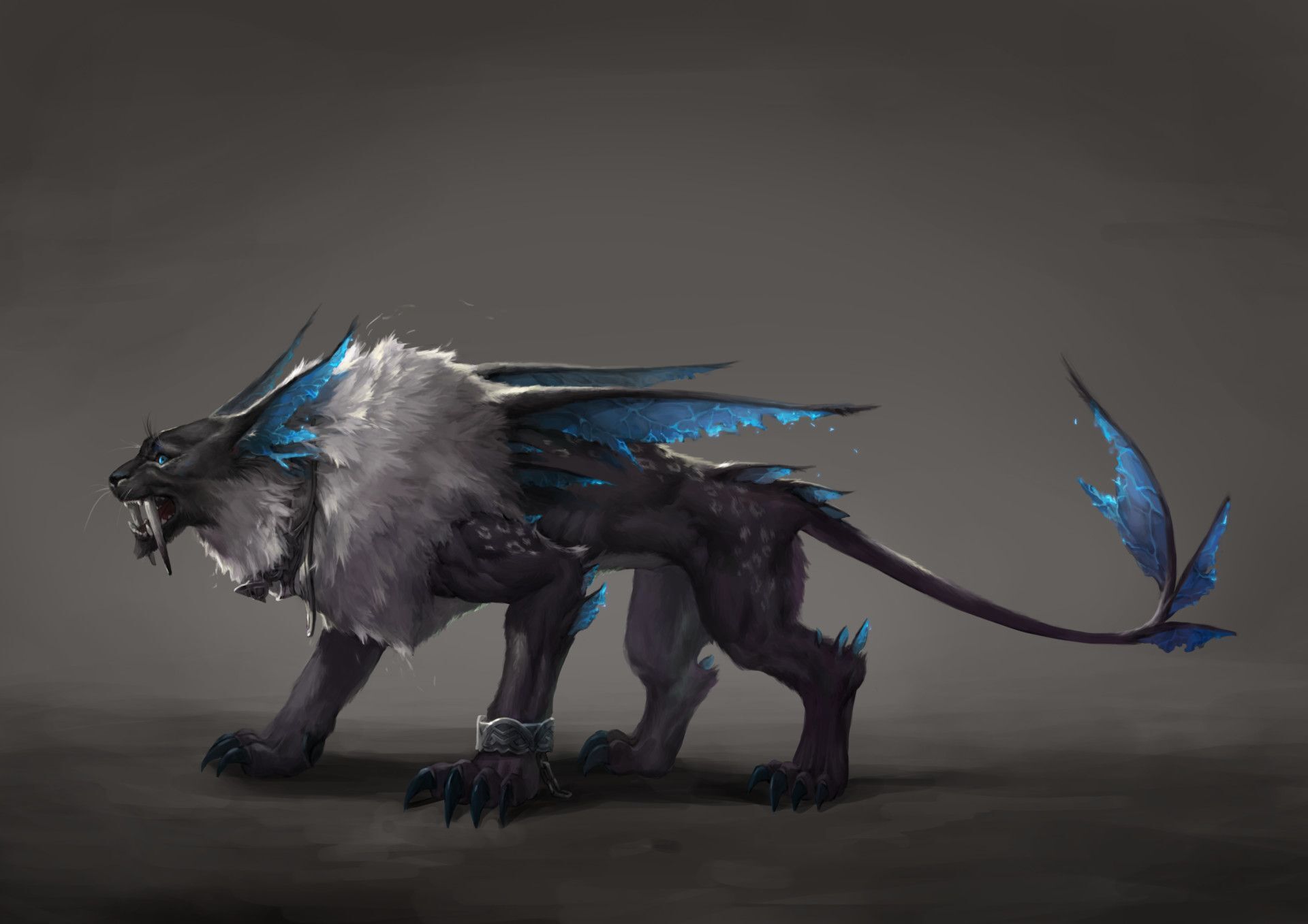 Спустя пару секунд в указанном направлении, из находящегося поблизости от магов каньона показалась морда черной пантеры, а после и все тело. Из ее верхней челюсти торчали два длинных клыка, как у саблезубых тигров, на спине росли два коротких отростка голубого цвета, отдаленно похожие на крылья бабочки, такие же голубые отростки венчали уши и конец длинного хвоста.