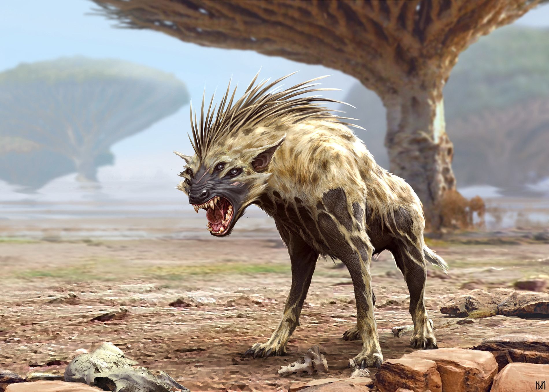 Спустя час ходьбы случилось первое нападение на магов. Ну как нападение, из-за очередной скалы к магам выскочили тройка Четырехглазых Гиен, что выглядели как четырехглазые собаки полтора метра высотой‚ но выпущенная Близнецом Духовная волна мгновенно отогнала магических тварей уровня Слуг.