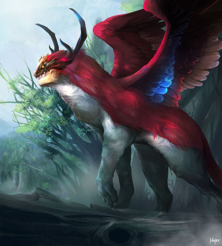 Голубые глаза быстро нашли сторожей пирамиды, которые к шоку Гуанга вообще не напряглись. Причина стала понятна сразу как магический зверь приземлился рядом со входом. Птицей оказался четырехметровый грифон. Крепкое тело было покрыто красными перьями сверху и белыми перьями снизу. Стояло оно на четырех мощных лапах, из спины росли длинные крылья, а позади качался тонкий хвост. Короткая морда была защищена костяным наростом на лице, а из головы торчало два коричневых рога.