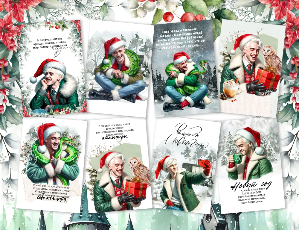 Открыточки уже в пути в славные российские города: Самара, Тамбов и Шахты. Скоро спрячу в какой-нибудь из глав еще одно зданьице. Следующий, 2025 год прям слизеринский)) Год змеи. Нашла вот такие еще прикольные открытки, чем не отличные маленькие радости!