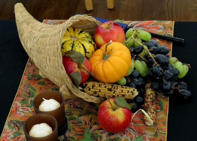 Рог изобилия : Рог изобилия — символ изобилия и достатка. Часто изображается как рог, переполненный фруктами, овощами и другими дарами урожая, символизируя щедрость Земли в этот сезон.