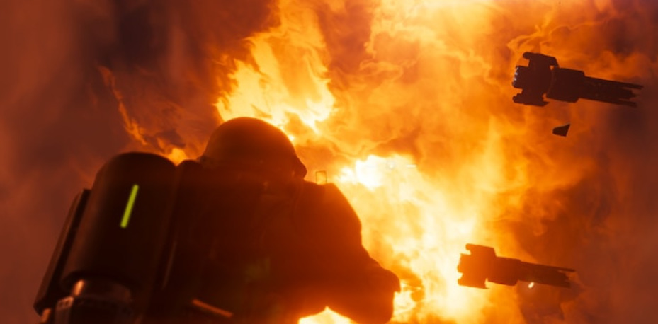 Забежав в разрушенную башню Корпуса Юстиции, начинаю творить "настоящую магию" с огнемётом, перегружая его системы и принудительно доводя технологичное оружие до взрыва.