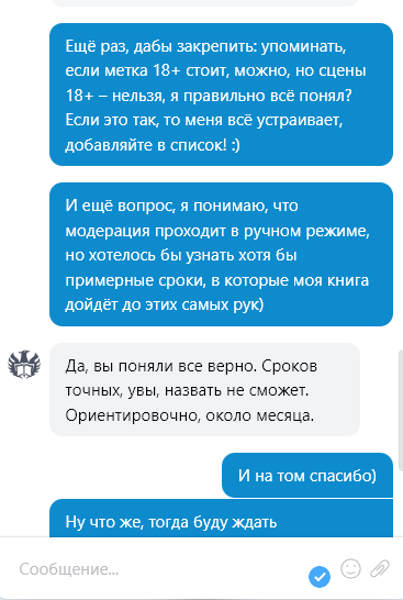 Уточнив, что попадает под подобный контент мне ответили, что любые сцены 18+ (инцеста) будут существенно увеличивать мой шансы отлететь, но уопминания(!) делать можно. То есть, по факту, я просто могу не добавлять главы с инцестом на АТ, оставляя их на том же бусти, а постфактум упоминать, дескать, было — могу. Звучит как план. Так что я подал заявку и возможно (я на это очень надеюсь) фанфик снова появится на АТ.
