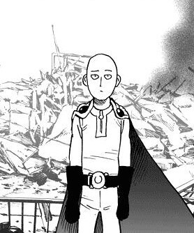 Резко развернувшись, я чуть было не нанёс по его обладателю удар ногой. Но вовремя остановился. Передо мной стоял молодой лысый парень, с мало что выражающим лицом и в костюме, будто бы надетым им во время косплей-фестиваля. Да, это был тот самый парень, которого я однажды мельком видел в городе Z. Сайтама, также известный как Человек один удар…