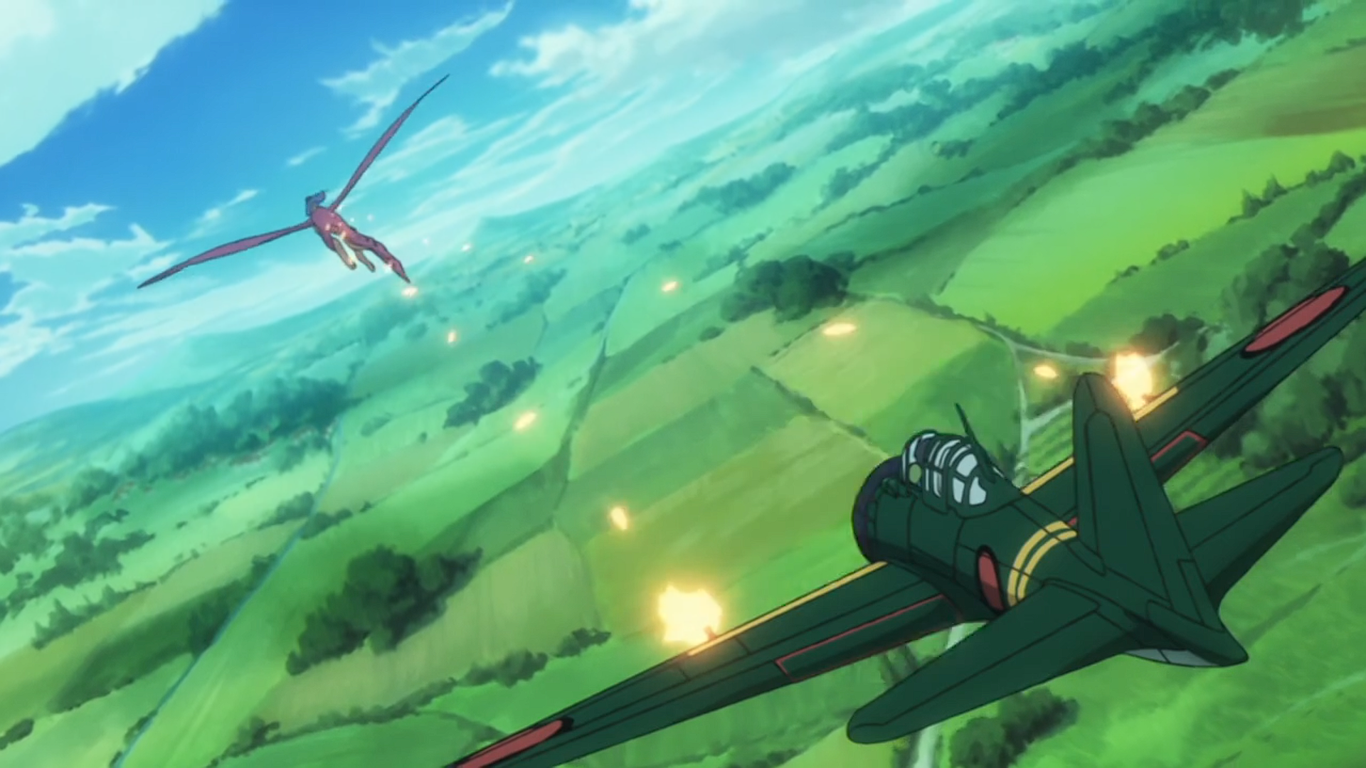 С глухим звуком, сопровождаемым сотрясением корпуса Зеро, пушки на крыльях открыли огонь. Крылья ближайшего огненного дракона мгновенно превратились в решето, животное начало по спирали падать на землю, вместе со своим всадником.