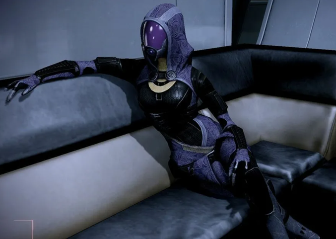 Кварианка попыталась достать гранату, которая при взрыве перегружает электронику в радиусе поражения. Однако люди Сарена оказались быстрее: один выбил гранату, другой направил пистолет прямо в голову кварианки.