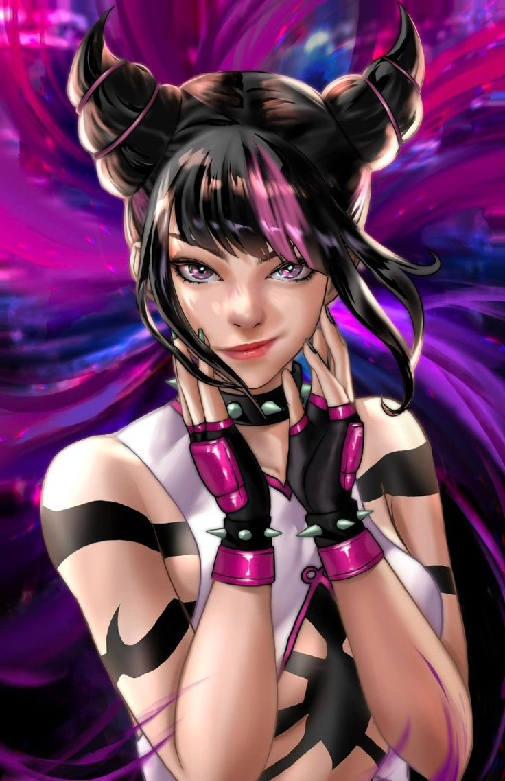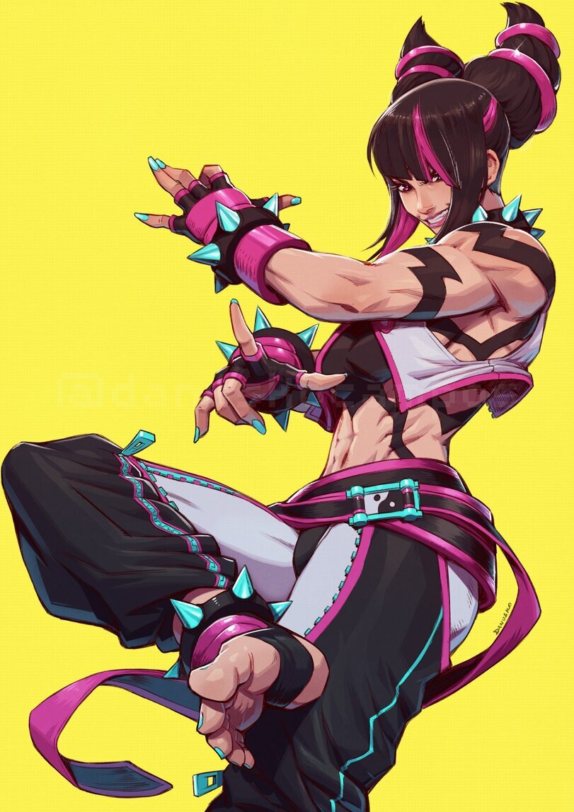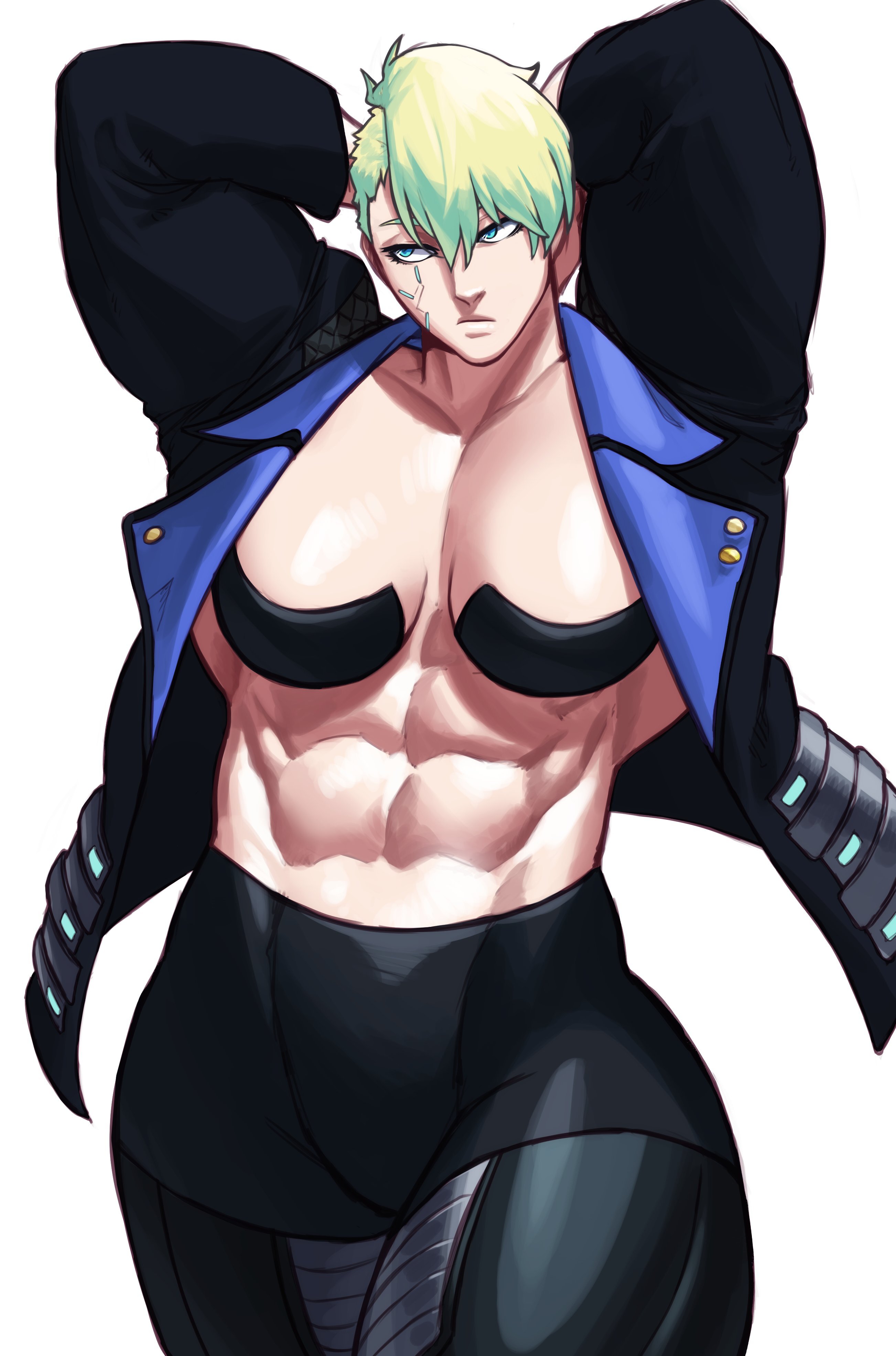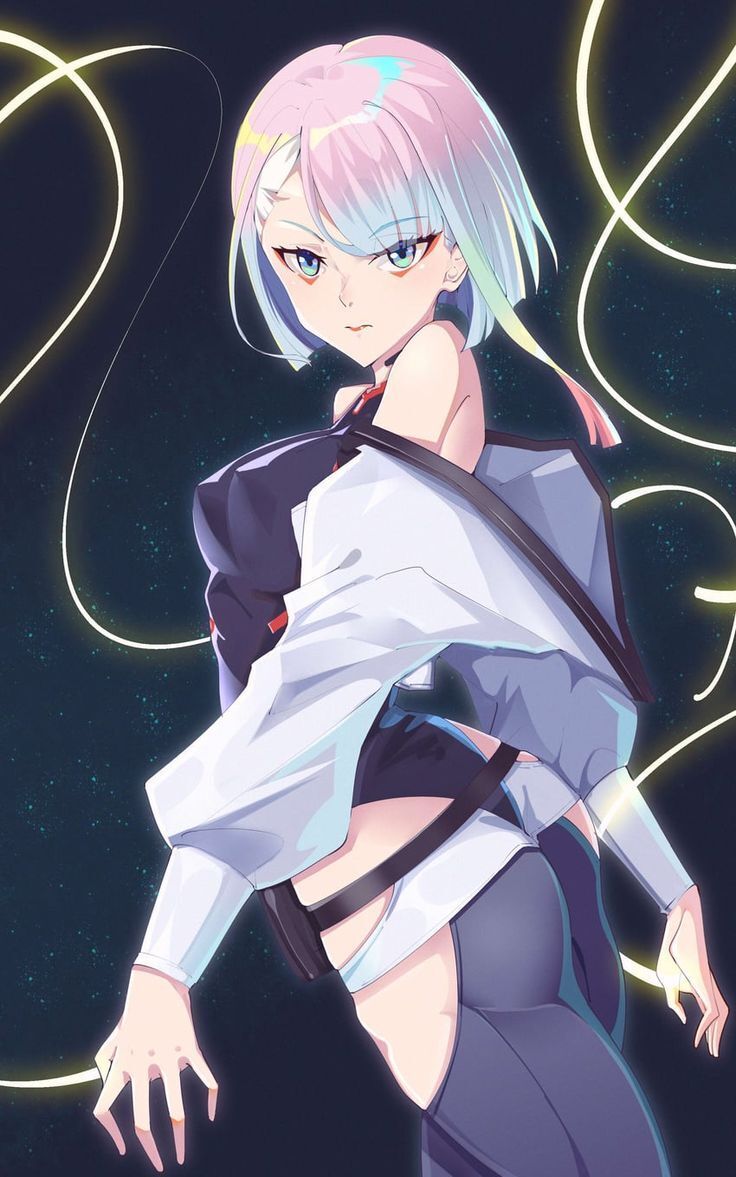 — Мэйн, какого хрена ты нас здесь собрал? — обратилась она к главному в их группе соло, а сама девушка имеет высокое натренированное тело, длинные ноги, узкую талию и приличного размера грудь. Зрачки её глаз имеют фиолетовый цвет, а волосы тёмные, уложены в два рога на макушке, удерживаемые лентами. Часть волос подстрижены так, чтобы чёлка была косой и закрывала часть лица, а некоторые пряди волос выделены ярко-розовым цветом. Стиль девушки такой же, как и у Люси — китч, смешанный с неомилитаризмом. Она носит крошечный укороченный топ без рукавов белого цвета и чёрные мешковатые брюки с характерным большим вырезом в промежности, под которым видны белые колготки. В общем, весь её наряд никак не сковывает движения, что очень хорошо для бойца, специализирующегося на ближнем бое.