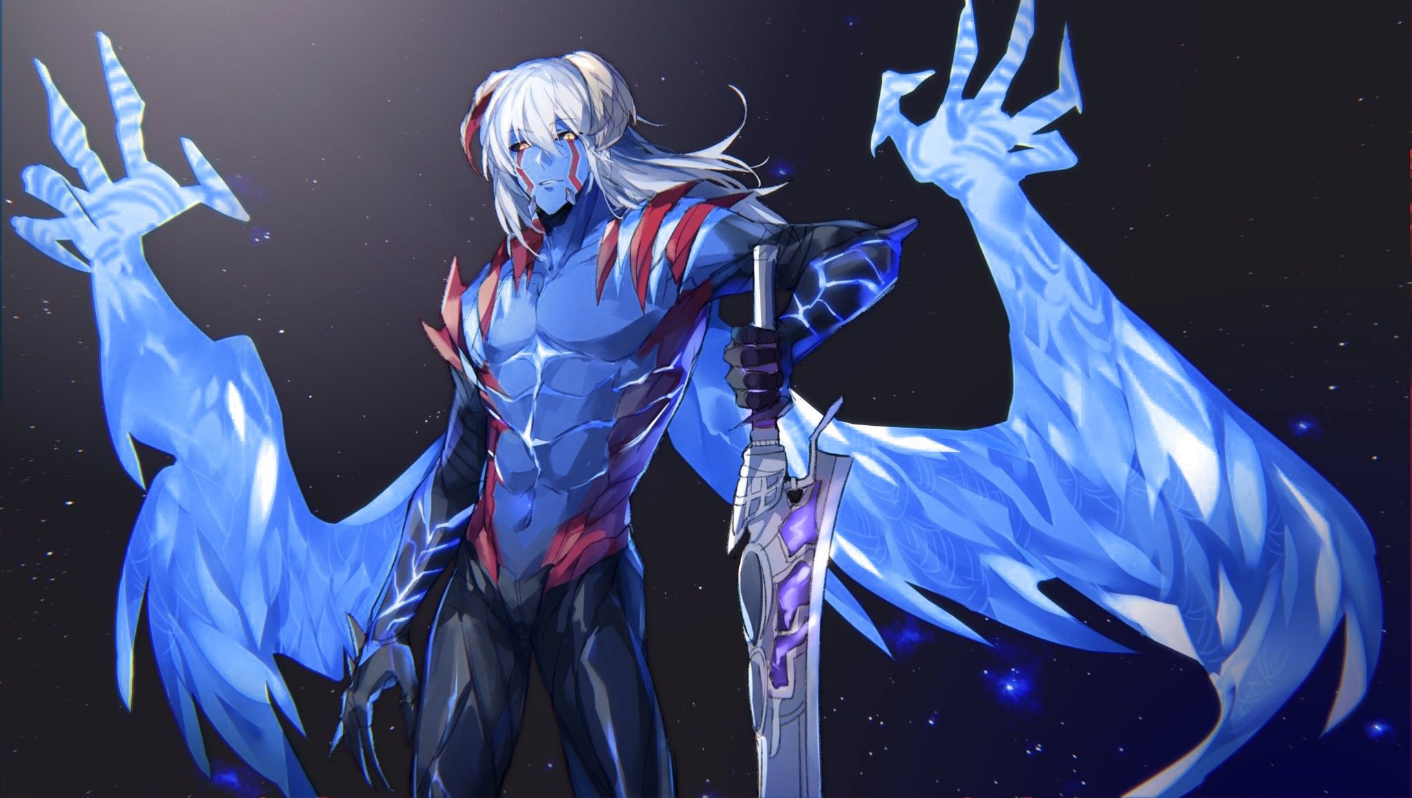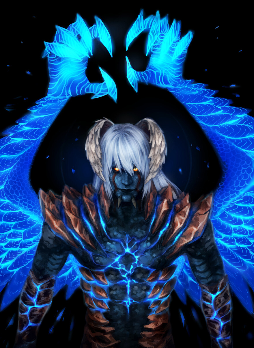 Ради интереса я начал пропускать псионику через тахионное ядро в моей груди и одновременно использовать цифростроение и наниты, чтобы моё тело полностью перестроилось в предельную форму. А поскольку одна из трех моих душ принадлежала дракону, то моё тело приобрело облик длинноволосого рогатого гуманоида, покрытого чешуей и с крыльями за спиной, состоящими из твердых частиц пространственной энергии.