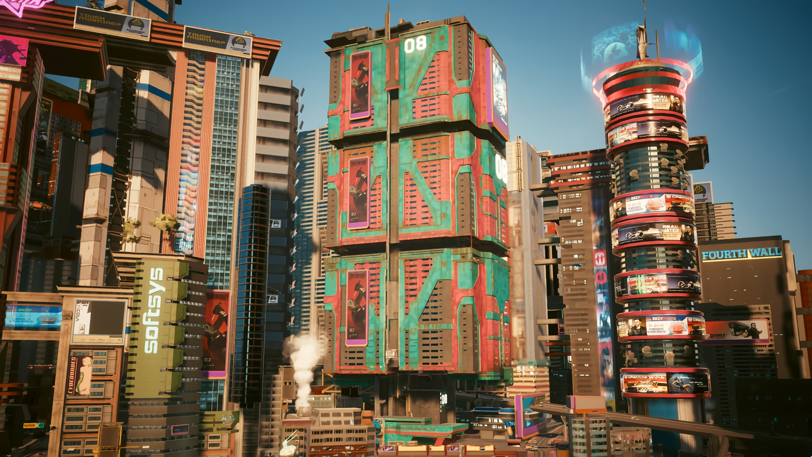 Следующая остановка была у дома Люси, а именно мегабашни H8. Мегабашни — высотные здания, имеющиеся в каждом районе Найт-Сити, и представляющие собой блочные высотные здания, в которых может проживать большое число людей. Можно сказать, они дальнейшее развитие комплексных строений, рассчитанных на проживание тысяч жителей и обслуживание тысяч посетителей. Современные проекты предусматривают наличие разнообразных магазинов, объектов питания и обслуживания, автоматов самообслуживания и почтоматов, превращающих здание в относительно самодостаточный комплекс. Вот только качество жизни в них ниже среднего, поэтому в них живут в основном люди среднего и низшего класса. И по этой причине мегабашен в Пасифике нет, так как в нем проживают те, кто работают на Вельткорп, и статус там особо не влияет на качество жилья.