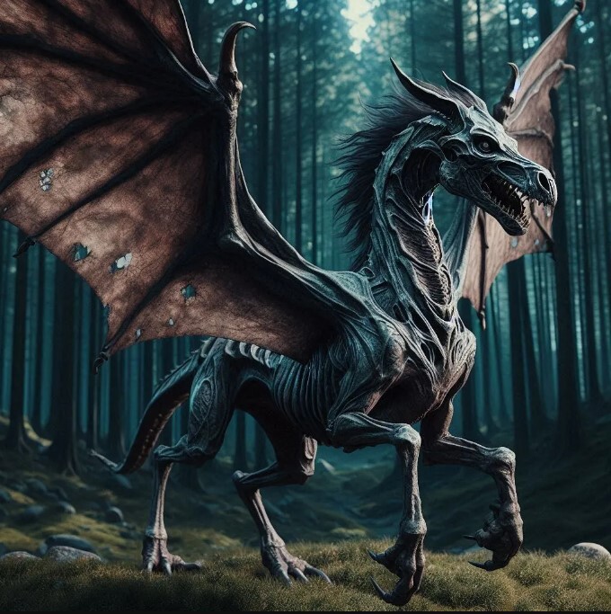 Морда фестрала больше напоминала драконью, с двумя небольшими рогами и пастью, испещрённой острыми клыками, которыми он с лёгкостью смог бы вырвать приличный кусок мяса из туши. Но больше всего внимания привлекали огромные кожистые крылья фестрала, напоминающие крылья летучей мыши, и когти длиной с небольшой кинжал.