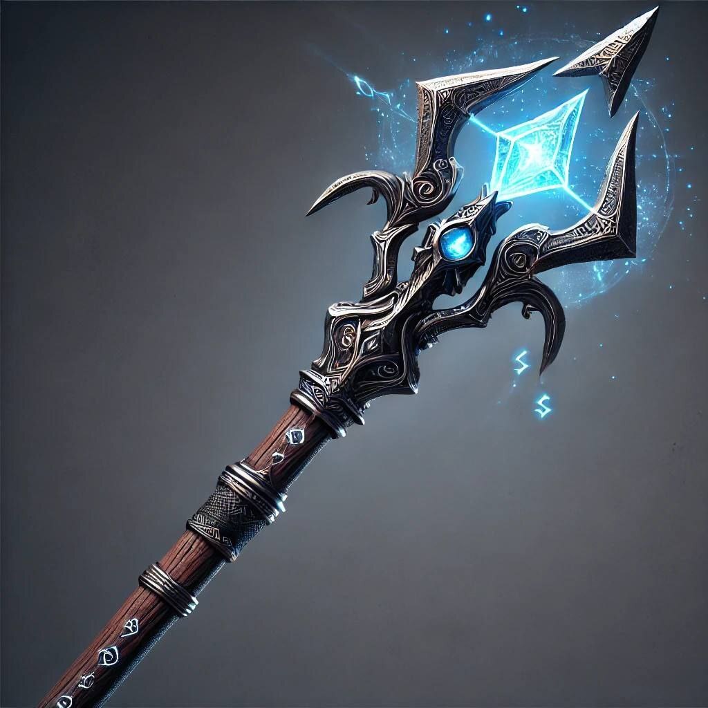Ровное, тёмное деревянное древко, укреплённое на копыте и ближе к вершине дорогой сталью (с гравировкой!). А само навершие было выполнено в форме… укруплённого острия копья с кристаллом, помещённым между лепестками. Это и было мне подарком на 14-летие.