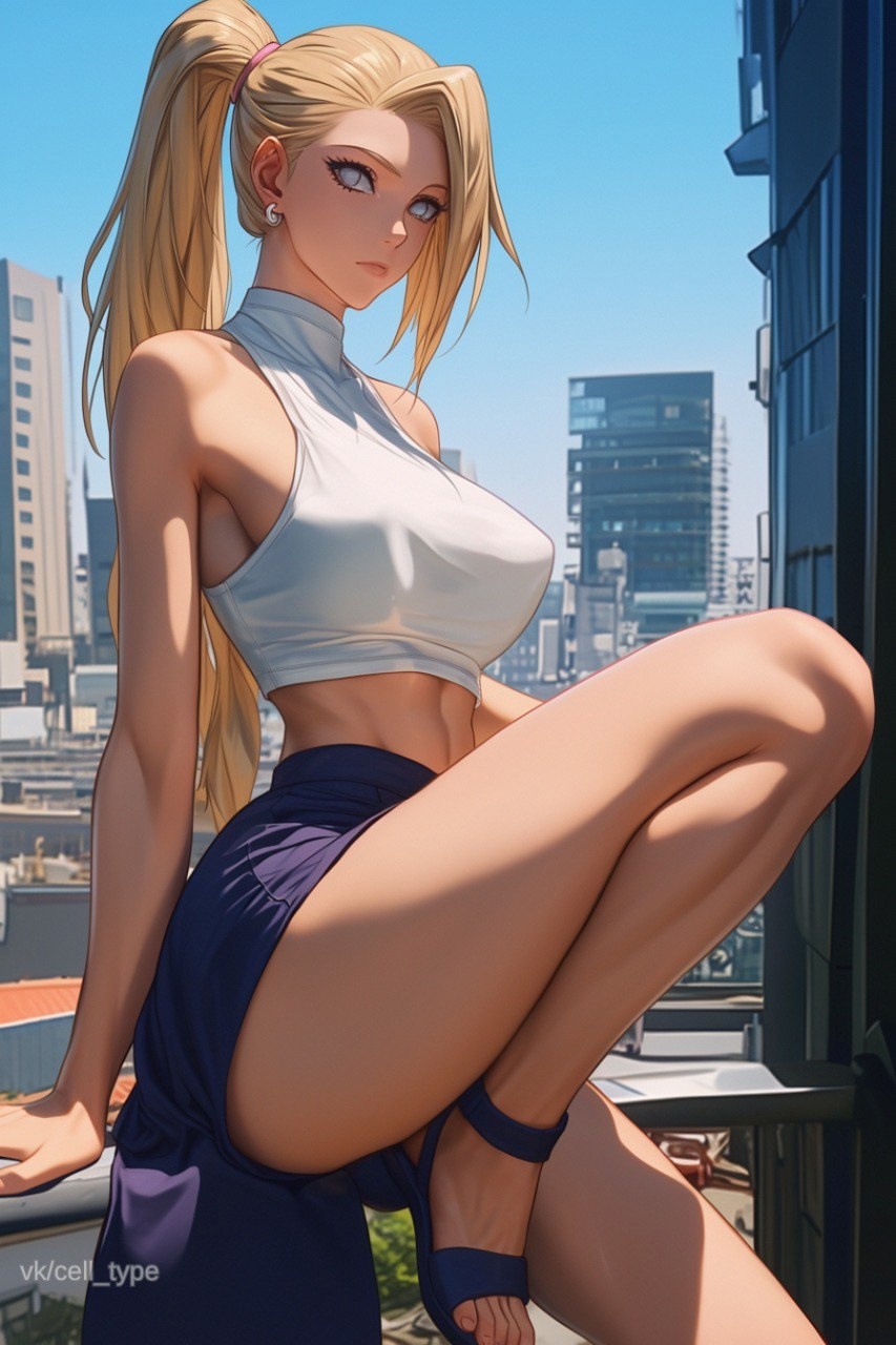 Ино пришла на встречу в длинной юбке с глубоким боковым разрезом. Она прекрасно демонстрировала стройную ножку Яманаки. Но обманываться не стоило. За рамки приличия девушка не выходила. Так как на самом деле её одеяние являлось юбкой-шортами. То есть показывало исключительно ноги. Ничего лишнего, оставляя простор для воображения. Подвох был и в её белом топе. Я уверен, что под ним нет бюстгальтера, но есть что-то вроде подкладки, которая мешает в полной мере почувствовать её грудь.