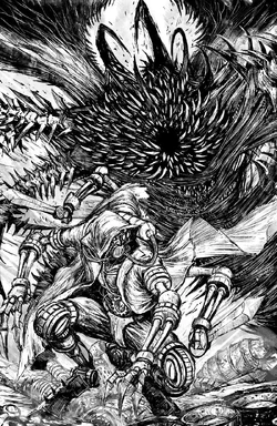 *До сих пор считаю грехом тот факт, что самый сильный демон, который смог долгое время на равных биться с Императором, был практически не использован в Ереси и вообще всей вселенной — каноничного Драк’ниена просто в меч засунули, и окончили на том.