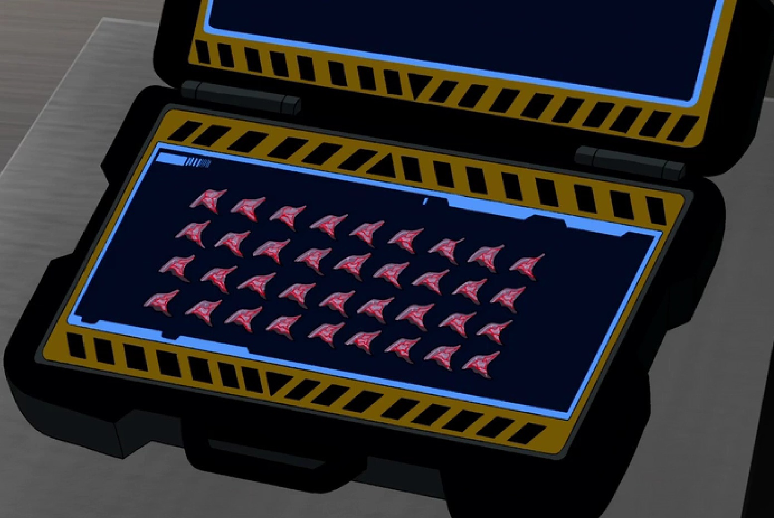 Ракета не успела последовать подсказке Робина и попала под выстрел одного из орудий, и над ней завис красный предмет, который напоминал диск, из которого били какие-то молнии.