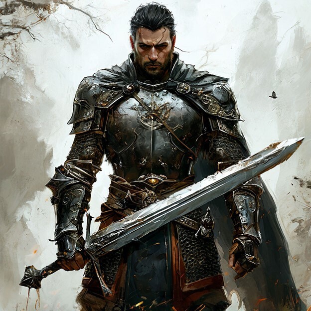 Аннел же высок, чёрноволос, с лицом, будто высеченным из камня и суровым взглядом. В нижней части лица виднелась тёмная щетина. Что примечательно — Аннел носил отцовский доспех, который был ему как раз в пору. Хотя обычно воины из кожи вон лезут и заказывают себе персональный доспех.