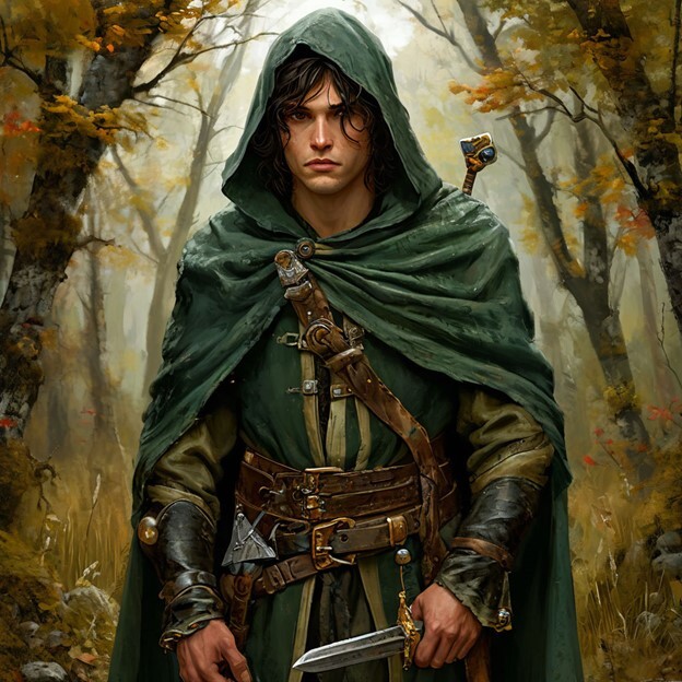 Рунл же обычный паренёк, который предпочитал зелёную одежду и носил гамбезон, под который надевал что-то напоминающее кольчугу, точнее её части. Вообще он старался держаться от сражений подальше. И его старались держать от них подальше.