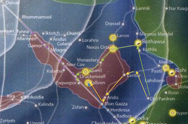 1. Зелёные стрелочки — действия Лайта и его флагмана. Основные сражения: битва за Нексус Ортай и битва за Квелл.