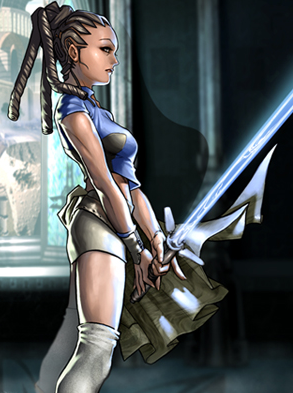 Она носила топик, открывающий её живот и коротенькую юбочку, сильно выше коленей. Её тёмные волосы были заплетены в причудливые косы.
