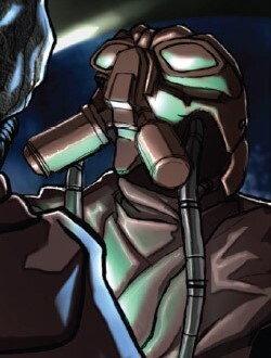 На его лице был одет дыхательный аппарат, который был нужен ему для пребывания в местах, где не было аммиачной атмосферы. Рядом с ним был заметен викуэй — Тир. Тир был консулом-дипломатом, работвашим по приказам Совета Примирения.