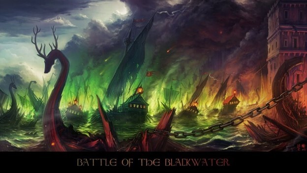 Вот они подошли на расстояние обстрела катапультами, который стреляли зажигательными снарядами. Начали говорить требушеты, катапульты и баллисты. Ряды Станниса редели, но с недостаточной скоростью. Корабли прошли в реку… Требушеты замолчали, слишком уж близко были враги и осадные орудия банально перебрасывали снаряды. Только баллисты и пушки могли стрелять, лупя прямой наводкой.