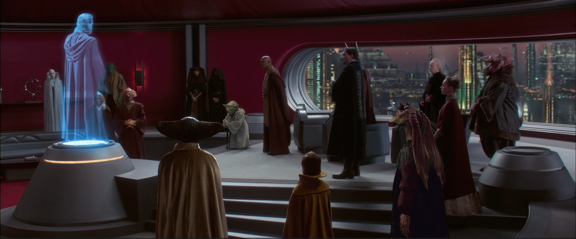 — Но у кого из Сенаторов хватит духу внести столь радикальный проект? — задал вопрос Палпатин. Да, играет он отпадно. Как я уже подмечал — Амидала сделала бы такое с очень большой неохотой. Пришлось бы ему искать кого-то столь же заметного, как и она и не факт что нашёл бы.