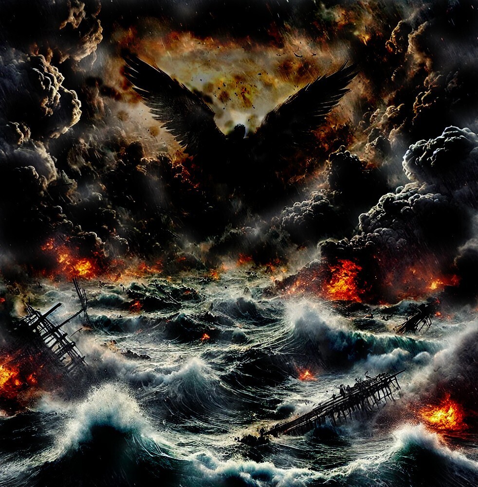 Когда буйство стихии исчерпало себя, а очередной рванный шрам на теле Гранд Лайн был надёжно похоронен, над всё ещё беспокойным морем, в ареоле ураганного ветра, парила лишь одинокая крылатая фигура, что, впрочем, быстро растворилась в едких клубах дыма и пыли, кометой устремившись на запад.