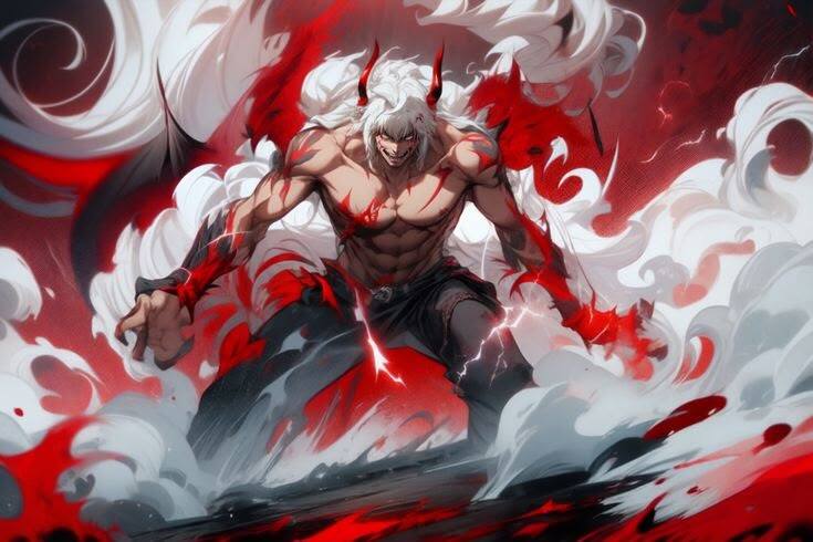 На голове же выросли два красных демонических рога, волосы словно шерсть зверя встали дыбом и покрытый алыми всполохами магических разрядов, грозно скалясь он в один миг пропал со своего места.