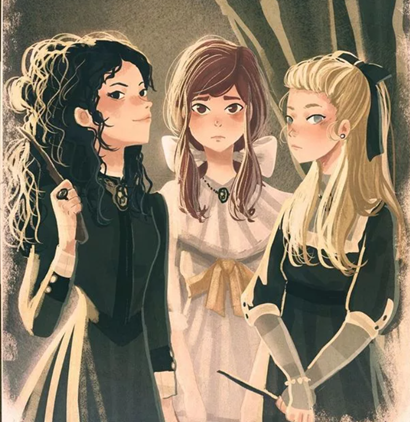 Хозяин поместья Абрахас занят группой важных гостей недалеко от входа. Вокруг него ещё несколько знакомых родов. А вон там среди подростков, похоже, сёстры Блэк: Нарцисса, Андромеда и Беллатрикс.