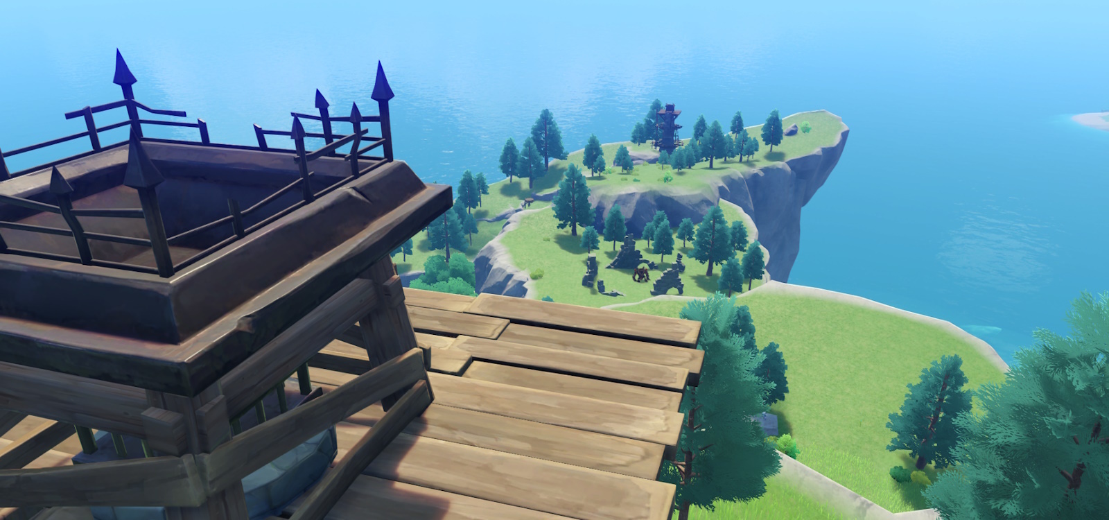 Махала она своей «оглоблей» будь здоров, и успела ополовинить численность дикарей возле вышки, еще до того, как я догнал эту сумасшедшую. И хорошо, что двигалась она достаточно быстро и не по прямой, а то нашпиговали бы ее тушку болтами, сидевшие на верху арбалетчики. Мешать девушке развлекаться с противниками на земле я не стал, а сразу же, с разгона, забрался на первый ярус строения по пути снеся голову одному из хиличурлов.