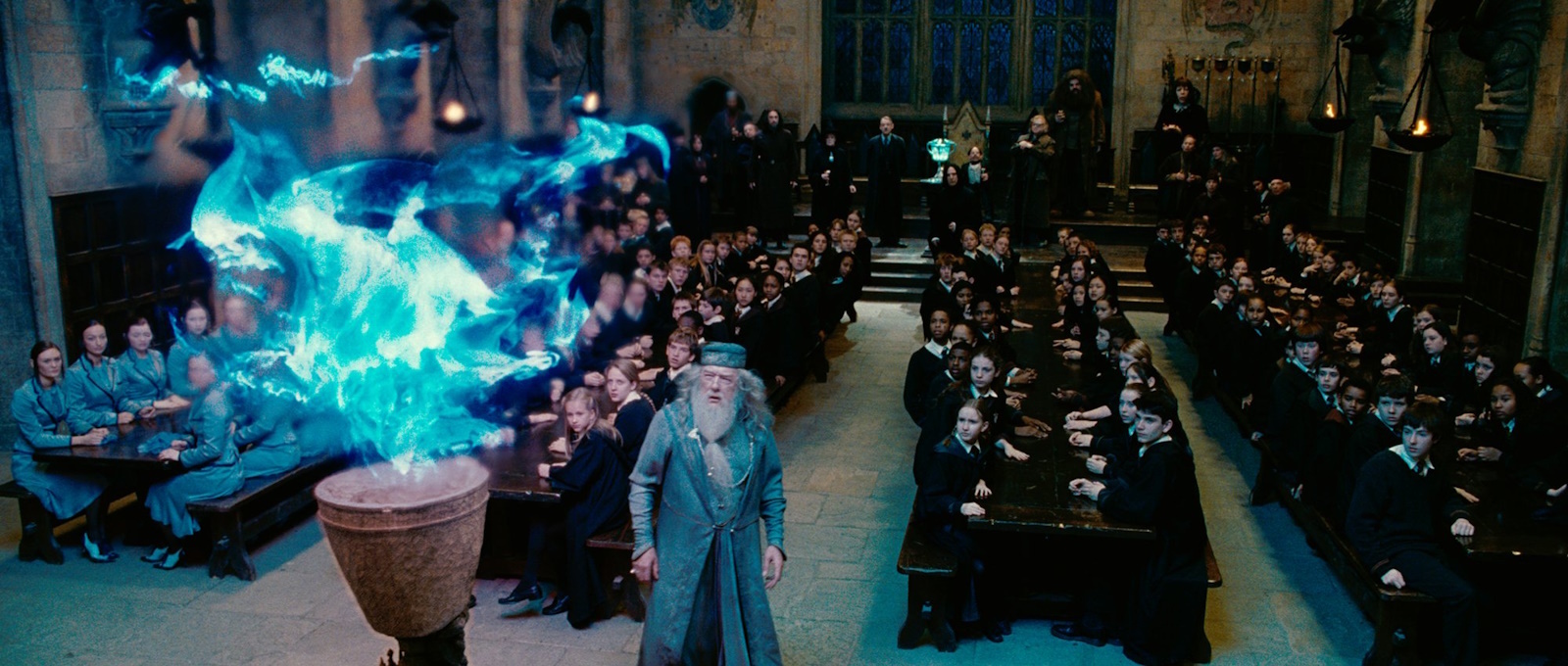 Зал погрузился в тишину, все с волнением следили за Дамблдором, который поднес ладони к голубому пламени, колыхавшемуся над старинным кубком. Пламя спокойно горело над кубком, пока по нему не начали проходить своеобразные волны, которые завершились яркой вспышкой и появившейся над пламенем запиской. Кусочек бумаги медленно спланировал в ладонь директора, который ловко подхватил его и почитал надпись на нем.