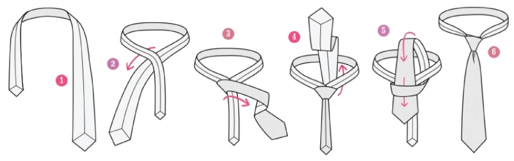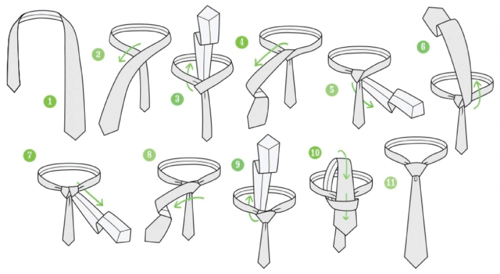 ¹ — Ви́ндзор (от англ. Windsor Knot) — классический галстучный узел. Подходит для завязывания галстука из тонкого материала (чаще всего шёлк). Сочетается с формами воротников «Акула», «Кент». Благодаря двойному симметричному закреплению широкого конца галстука получается довольно крупный симметричный узел треугольной формы. Самораспускающийся (если узкий конец галстука вынуть из узла, узел развяжется), завязывают с лицевой стороны галстука.