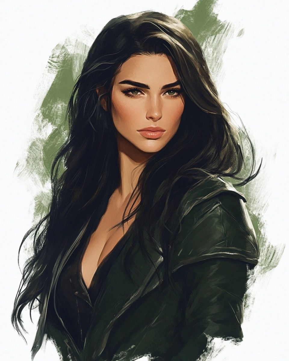 Одета она, кстати, была в какое-то простое чёрное платье в пол с накидкой из тонкой зелёной кожи. Откуда такое богатство, даже спрашивать было не нужно. Общий крой в пиджаке и одежде Верховного был легко узнаваем. При этом женщине это удивительным образом шло, особенно учитывая густые тёмные волосы, свободно спадающие вокруг красивого лица.