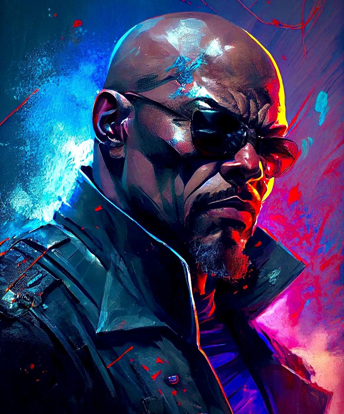 Остановившись в паре метров, он замер, приняв эффектную позу и сцепив руки за спиной. Так совпало, что буквально в шаге от Дневного бродяги находился Ник Фьюри и двое брутальных, чернокожих героев Марвела словно бы соревновались, кто из них круче и пафоснее.