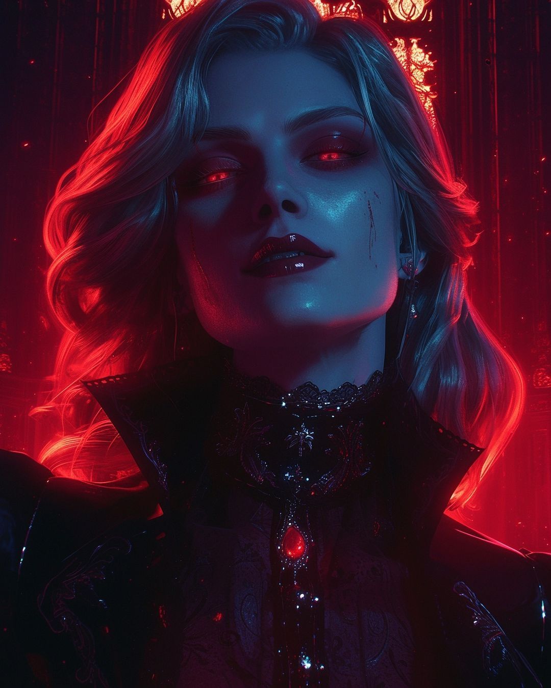 Он быстро развернулся на месте и отскочил в сторону, застыв в небольшом ступоре. Перед ним стояла высокая, около шести футов или больше ста восьмидесяти сантиметров ростом красивая женщина. Прекрасная белоснежная кожа была без единой морщинки ил пятнышка. Алые глаза смотрели на него уверенно, с небольшой насмешкой и интересом, а кончики полных губ, вишнёвого цвета, приподнялись в намёке на улыбку. Белые волосы прекрасным водопадом струились по плечам и груди.