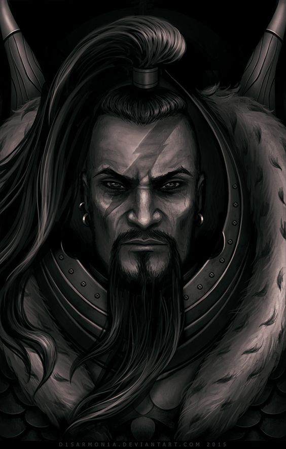 Он был высок и даже я в своем доспехе с трудом доставал до его челюсти. Тело его походило то на жидкую ртуть то на взведенную пружину, сила плавучая и текущая словно вода при этом одновременно сдерживаемая как пес на цепи. Его черты лица напоминают земных монголов но намного благороднее, Высокие скулы, четко очерченная линия челюсти и резкие, благородные черты, глубоко посаженные глаза с хищным прищуром и еле заметной искоркой веселья и дикости даже сейчас когда перед ним стояли неизвестные воины.