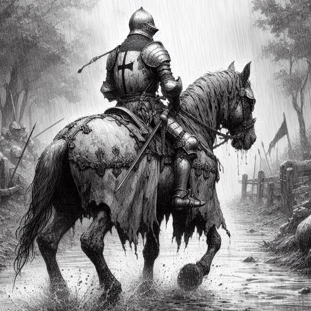 Дождь заметно усилился. В начале, редкие капли падали на плащи и стучали по кольчугам. Но чем ближе всадники подъезжали к деревне, он перерос в настоящий ливень, превращая землю в месиво грязи.