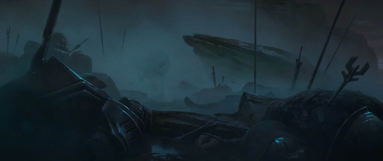 Не предпринимая попыток подняться, прекрасно помня чем это грозит, аккуратно, чтобы не тревожить раны, осмотрелся по сторонам. Густой туман не позволял полностью осмотреть поле боя, но ближайшее окружение, запросто. Я лежал в крови, посреди десятков трупов, закованных в стандартизированные латы. Новые воспоминания сразу помогли понять, что все воины принадлежат Ноксусу, моему новому дому. Сражение на этом участке земли неизвестно когда закончилось, оставив за собой землю покрытые кровью и тысячи трупов.